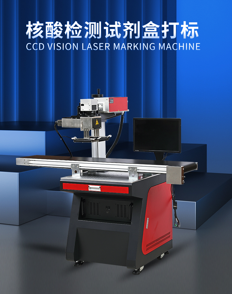 紫外激光打標(biāo)機(jī)在核酸試劑盒上進(jìn)行打標(biāo),打標(biāo)效果細(xì)膩完整且美觀。但是普通的標(biāo)準(zhǔn)紫外激光打標(biāo)機(jī)顯然不能滿足如此大的產(chǎn)量 ,因此我們蘇州光谷光電聯(lián)合核酸試劑盒制造商一同制定定制方案,短短的時(shí)間內(nèi)推出這款讓產(chǎn)量成倍增長(zhǎng)的結(jié)合視覺識(shí)別和流水線于一體的定制紫外激光打標(biāo)機(jī)。
